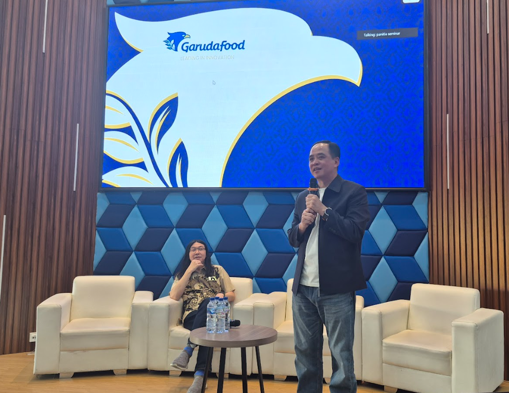 Gambar 1. Pemaparan materi oleh Rudi Eko Hartono, Direktur PT Tudung Putra Putri Jaya (Garudafood)